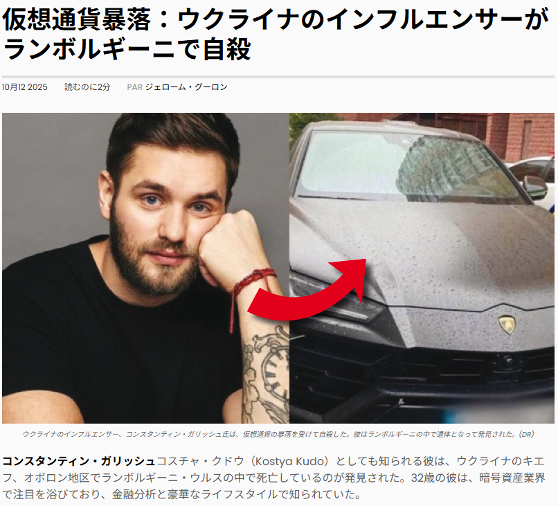 引用 https://entrevue.fr/ja/monde/mort-de-konstantin-galish-linfluenceur-crypto-ukrainien-retrouve-sans-vie-dans-sa-lamborghini/